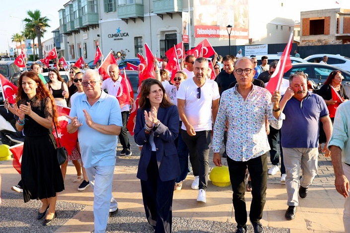 Yurttaşlarla beraber kortej yürüyüşüne katılan Çeşme Belediye Başkanı Lal Denizli, saygı duruşu ve İstiklal Marşı’nın okunmasının ardından burada yaptığı konuşmasında şunları söyledi: