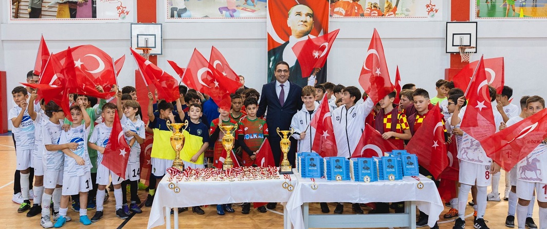 Balçova Belediye Başkanı Onur Yiğit, dereceye giren takımlara kupalarını verirken katılan 100 öğrenciye Nutuk armağan etti.