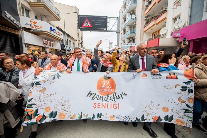 Seferihisar Belediye Başkanı İsmail Yetişkin de bir kez daha ilçeyi turuncuya boyadıklarını belirterek, “Mandalina şenliği ile verimli topraklarımıza sahip çıkmayı, üretmeyi, ülkemizin geleceği için tarımdan vazgeçmeyişimizi kutluyoruz. Bir araya geldiğimizde birbirimize güç ve neşe verişimizi kutluyoruz. Bu yıl turuncu bayramımız biraz buruk. Mandalina üretimimizin neredeyse yarısından fazlasını dolu vurdu. Hem ziyan olan mandalinalar için hem de bir yıl boyunca emek veren tüm çiftçilerimiz için çok üzgünüm. Fakat iklim krizi kaynaklı doğal afetler bitecek gibi görünmüyor. Bugün fırtına vurdu, önceki gün dolu vurdu derken tarımsal üretimimiz durma noktasına gelecek. Burada bir mandalina üreticisi olarak devlete sesleniyorum. Tarımsal üretim ve çiftçinin korunması için bir an önce etkili politikaların başlatılması gerekiyor. Artık kaybedilecek zaman kalmadı” dedi.