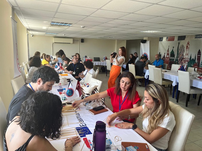 Yurtdışı hareketlilikte takım çalışmasının en önemli konu olduğu belirten Çiğli Akiş Öğütçü Ortaokul Müdürü Mesude Kanyılmaz ise STEAM atölyesi kapsamında Davinci köprüsü etkinliği ile çeşitli materyaller kullanarak, takım çalışması yoluyla köprüler oluşturdular.