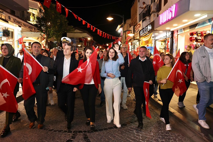 Akşam saatlerinde ise Çeşme Kaymakamlığı tarafından Çeşme Belediyesi destekleri ile Uğur Mumcu Parkı’ndan Cumhuriyet Meydanı’na düzenlenen Fener Alayı renkli görüntülere sahne oldu. Bando takımı eşliğinde devam eden kortej yürüyüşünün ardından Cumhuriyet Meydanı’nda Çeşme Belediyesi tarafından düzenlenen Bülent Ortaçgil ve Birsen Tezer konseri vatandaşlara unutulmaz anlar yaşattı.