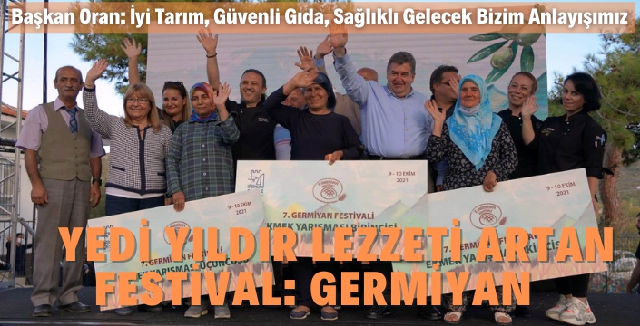 “Son yıllarda yaşanan sıkıntılarda gördük ki; tohum bozuksa ürünü bozuyor, toprağı bozuyor, birliği, dirliği, huzuru bozuyor. Bu domatesin tohumu da olsa, biberin tohumu da olsa böyle, gözünü hırs bürümüş, kendinden başka bir şey düşünmeyen insanın karanlık düşüncelerinin tohumları da olsa böyle.. İşte bizi diğerlerinden farklı kılan, bir arada tutan, geleceğe umutla bakmamızı sağlayan şey tam da bu. Bizim niyetlerimiz iyi, köklerimiz sağlam, hedeflerimiz net. Germiyan’ı bu kadar büyüleyici yapan da toprağına aşık üreticilerimiz, evlerinin duvarlarını yürekleri gibi çiçek resimleri ile donatan kadınlarımız, sevgiyle, emekle sürdürülen geleneklerimiz. Biz sahip olduklarımızın farkındayız, bu zenginlikleri koruyarak çoğaltmayı ve siz misafirlerimizle paylaşmayı çok seviyoruz” dedi.