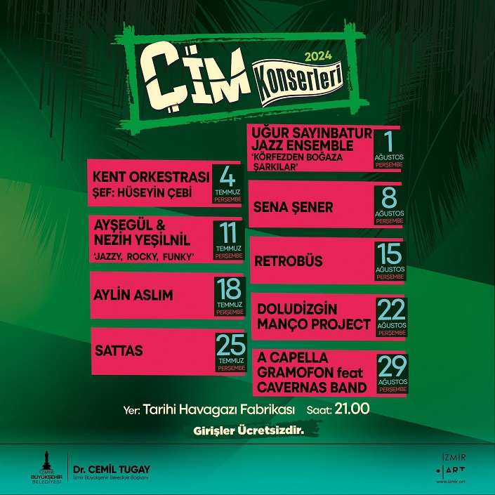İzmir Büyükşehir Belediyesi tarafından bu yıl yedinci defa düzenlenen Çim Konserleri İzmirlileri yine sanatla buluşturacak.