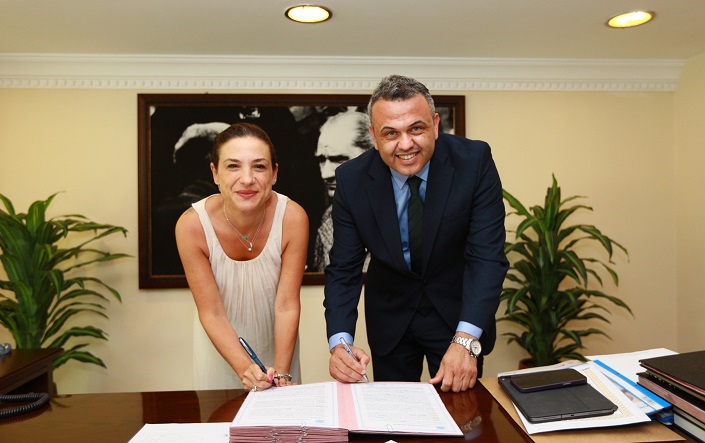 İzmir Su protokolü Efes Selçuk Belediye Başkanı Filiz Ceritoğlu Sengel ve İzmir Büyükşehir Belediyesi Grand Plaza Genel Müdür Yardımcısı Sabit Duran arasında imzalandı.