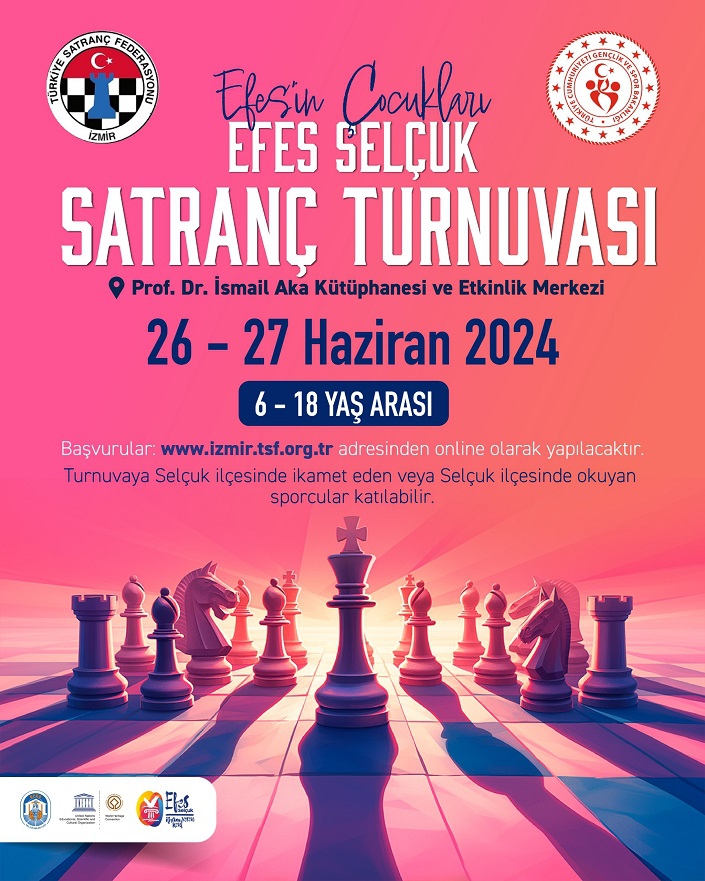 Satrancı gelecek nesillere sevdirmek ve çocukların hayatına dahil etmek amacıyla düzenlenen turnuva kapsamında başvurular http://www.izmir.tsf.org.tr/ adresi üzerinden çevrimiçi olarak yapılacak.