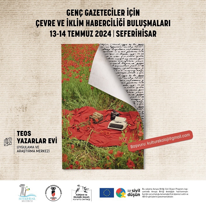 Çevre ve iklim alanında branşlaşmak isteyen genç gazeteciler, 13-14 Temmuz 2024 tarihlerinde İzmir Seferihisar’da gerçekleşecek olan Genç Gazeteciler için Çevre ve İklim Haberciliği Buluşması’nda bir araya gelecek.