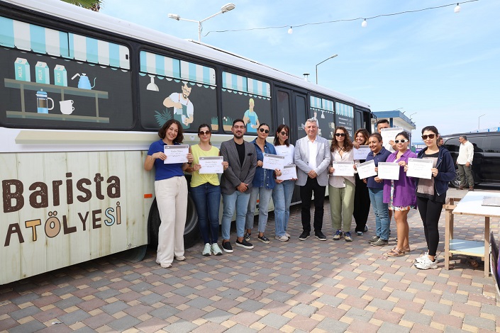 Günümüzde kahve sektörüne ilginin giderek artığını ve bu alanda istihdama duyulan ihtiyacın da çoğalması nedeniyle barista eğitimi vererek kahve yapımına ilgi duyan vatandaşları sertifikalı bir şekilde iş hayatına kazandırmak istediklerini söyleyen Güzelbahçe Belediye Başkanı Mustafa Günay, “Meslek Fabrikasını Güzelbahçe’ye getirip kursları açacağız diye seçim bildirgemize koymuştuk. İlk kursumuzu barista kursuyla başlattık. Barista kursuna büyük bir ilgi oldu. İki günde 300 vatandaşımız başvuruda bulundu. İzmir Büyükşehir Belediyesi Meslek Fabrikası ve Güzelbahçe Belediyesi iş birliğiyle düzenlediğimiz eğitimimizin asıl amacı istihdam. Eğitimlerimiz şu an mobil araçta başladı. İlk etapta amacımız vatandaşlara bu eğitimi tanıtmak ve katılımı arttırmak. Mobil Barista Kursu’nda katılımcılarımıza birinci nesil, ikinci nesil ve üçüncü nesil kahvelerimizi tanıtıyoruz. Kahve çekirdeklerimizin çeşitlerini ve doğru sunumlarını detaylı olarak öğretiyoruz. 2 hafta sürecek eğitimde 12 kursiyere sertifikalarını verdik. Önümüzdeki hafta da diğer grup eğitim alacak. İzmir Büyükşehir Belediyemiz ile birlikte kurs programlarımızı çoğaltacağız. Kursa katılan vatandaşlarımız daha büyük bir yer istedi. Biz de Büyükşehir bürokratlarımızla görüştük. 150 saatlik bir kurs planlamayı düşünüyoruz. Belediye Düğün Salonu’muzda bu kursu vermeyi düşünüyoruz. Sonrasında bir Meslek Fabrikasını da Güzelbahçe’mize kazandıracağız” diye konuştu.