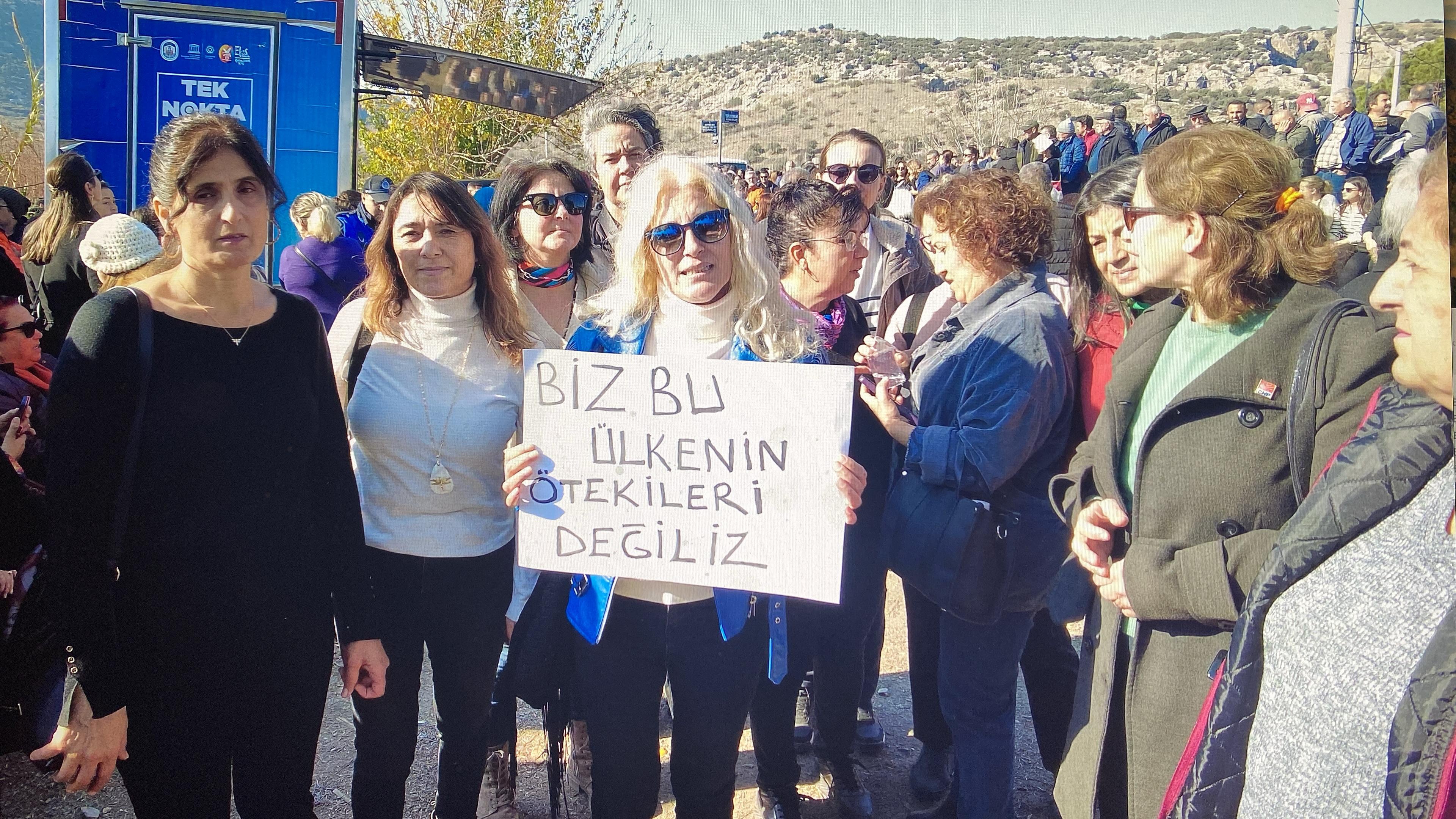 Meryem Ana Evi nöbetine destek verdiğini belirten Dudu Korkutan; “Buraya başkanımızı desteklemeye geldik. Meryem Ana’yı almalarını istemiyoruz. Garibanın, herkesin ekmek teknesi burası. Meryem Ana olmasa bu çalışanlar nereden geçinecek? Nasıl geçimlerini sağlayacaklar? Ben devletimize bunu yakıştıramadım” dedi.