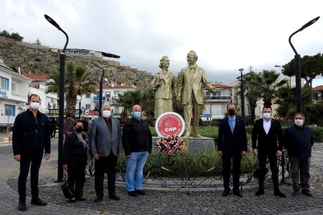 Çeşme sahilindeki İsmet İnönü ve eşi Mevhibe İnönü'nün heykeli önünde, pandemi önlemleri çerçevesinde az sayıda katılımla gerçekleştirilen anma törenine, Çeşme Belediye Başkanı Ekrem Oran, CHP İlçe Başkanı Sait Kavasoğullar, Yönetim Kurulu Üyeleri ve Belediye Meclis Üyeleri katıldı.