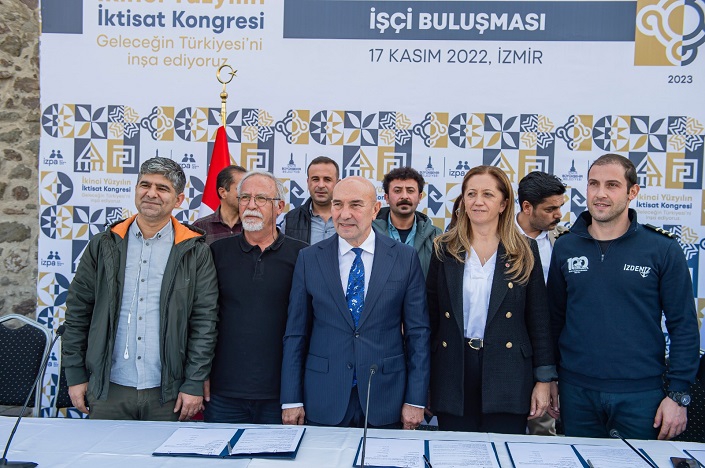 İzmir Büyükşehir Belediye Başkanı Tunç Soyer, “Hayırlı bir iş için bir aradayız. Promosyon işçinin hakkıdır. Bizde o hakkı teslim etmek için bu girişimde bulunduk. İş Bankası ile mutabık kalarak son noktayı koyduk. Tam da İktisat Kongresi ile ilgili bir araya geldiğimiz zamana denk gelmiş olması da ayrıca bizi çok mutlu etti. Hayırlı olsun” dedi.