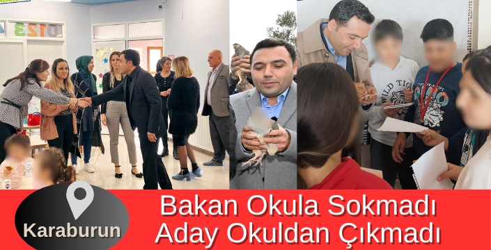 Cumhur İttifakı Karaburun Adayı Eyüp Kaykaç’ın okuldan paylaşımlarını Milli Eğitim Bakanı Yusuf Tekin’in, 29 Şubat ve 2 Mart tarihleri arasında üç gün boyunca kamp kurduğu İzmir’de “Gerçek Belediyecilik” ve “AK Parti’ye destek” mesajını verdiği çok sayıda programa katıldığı zaman dilimine denk getirmesi dikkat çekici.