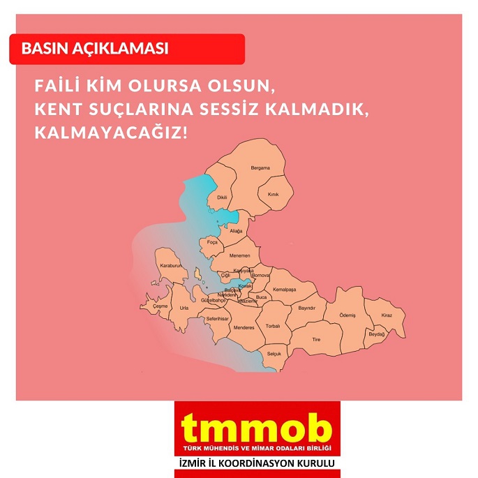 - 21.10.2022 tarihinde TMMOB Şehir Plancıları Odası ve TMMOB Mimarlar Odası İzmir Şubesince yapılan açıklamada;