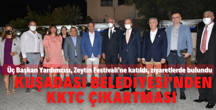 Kuşadası Belediye Başkan Yardımcıları, festivalin açılış töreninde KKTC Cumhurbaşkanı Ersin Tatar ve Girne Belediye Başkanı Nidai Güngördü ile bir araya geldi. Cumhurbaşkanı Ersin Tatar’a Kuşadası’nda yaşama geçirdikleri projeler hakkında bilgi veren heyet, KKTC ile Kuşadası Belediyesi arasında ticaret ve turizm alanında yürütülebilecek çalışmalar hakkında fikir alışverişinde bulundu.