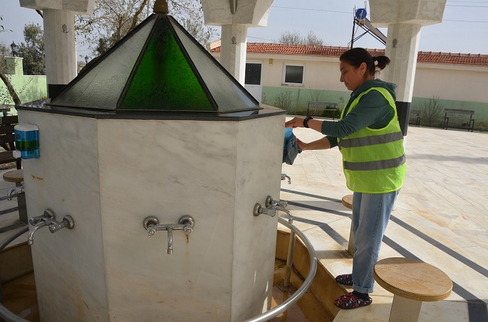 Menderes Belediyesi Temizlik İşleri Müdürlüğüne bağlı ekipler, ilçe genelindeki camilerde halıları süpürüp, tuvaletleri temizleyerek dip köşe temizlik yaptı.