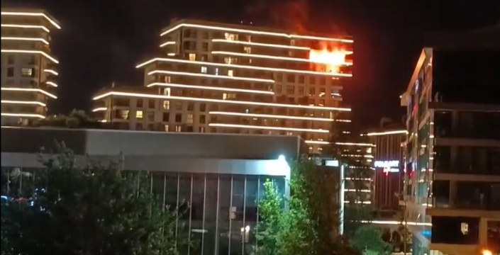 Bornova'da bulunan Folkart Life'da, bir daireden alevler yükseldi.
