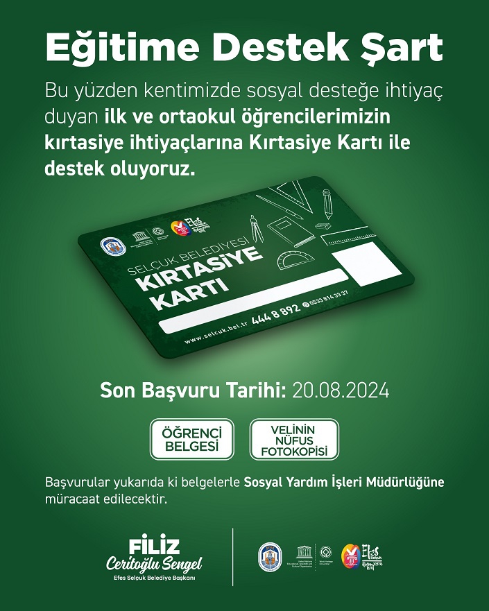 Efes Selçuk Belediyesi Sosyal Yardım İşleri Müdürlüğü başlattığı Kırtasiye Kartı uygulaması ile sosyal desteğe ihtiyaç duyan ailelerin her zaman destekçisi olduğunu bir kez daha gösteriyor.