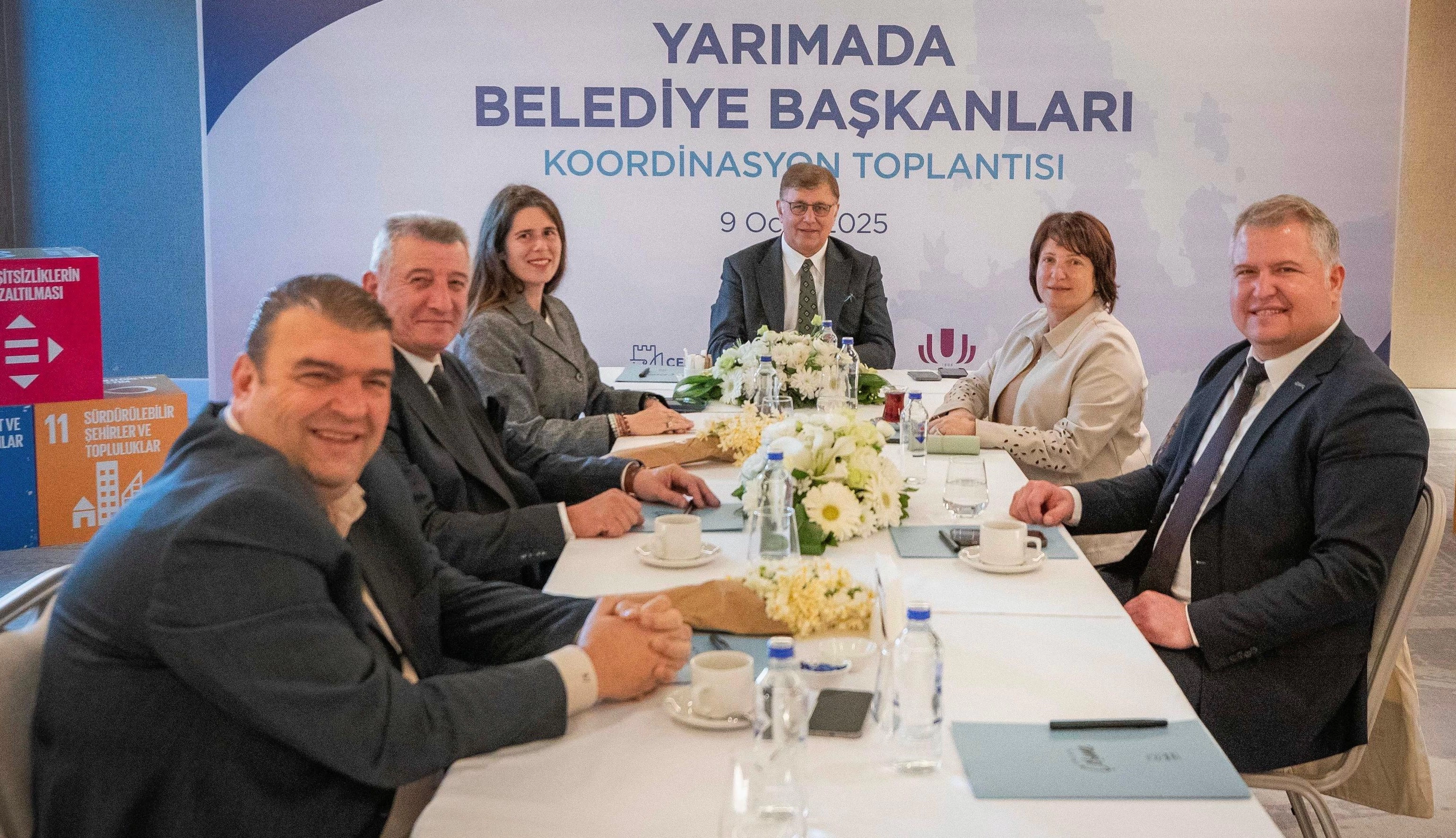 İzmir Büyükşehir Belediye Başkanı Dr. Cemil Tugay’ın başkanlığında gerçekleştirilen yılın ilk Yarımada Belediye Başkanları Koordinasyon Toplantısı, Çeşme’de düzenlendi. Toplantıda; İzmir Büyükşehir Belediye Başkanı Dr. Cemil Tugay, Çeşme Belediye Başkanı Lâl Denizli, Urla Belediye Başkanı Selçuk Balkan, Seferihisar Belediye Başkanı İsmail Yetişkin, Güzelbahçe Belediye Başkanı Mustafa Günay, Karaburun Belediye Başkanı İlkay Girgin Erdoğan yer aldı.