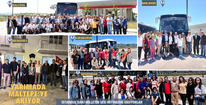 CHP'nin Balçova, Narlıdere, Güzelbahçe, Menderes, Karaburun, Seferihisar gibi ilçe örgtleri mensupları, saat 18.00’de Maltepe Sahil Miting Alanı’nda yapılacak mitingde yer alacak.
