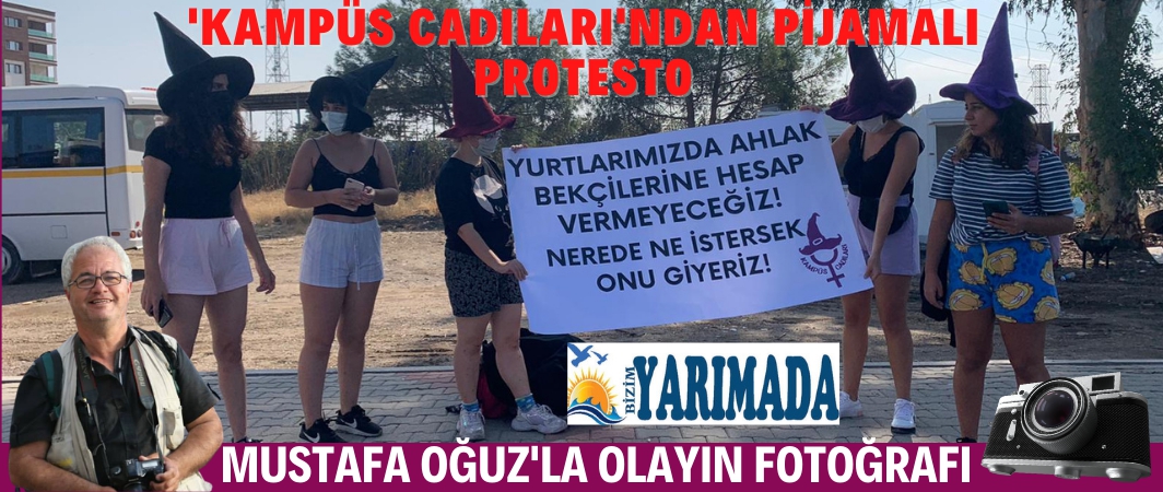 Kendilerine 'kampüs cadıları' adını veren kadın öğrenciler, İzmir Katip Çelebi Üniversitesi (İKÇÜ) içerisindeki Cihannüma KYK yurdunun kadın öğrencilere, oda dışarısında pijama giymelerini yasaklamalarını, yurt önüne pijamalarla giderek protesto ettiler.